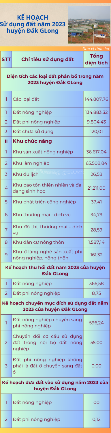 Phê duyệt kế hoạch sử dụng đất năm 2023 huyện Đắk Glong, tỉnh Đắk Nông